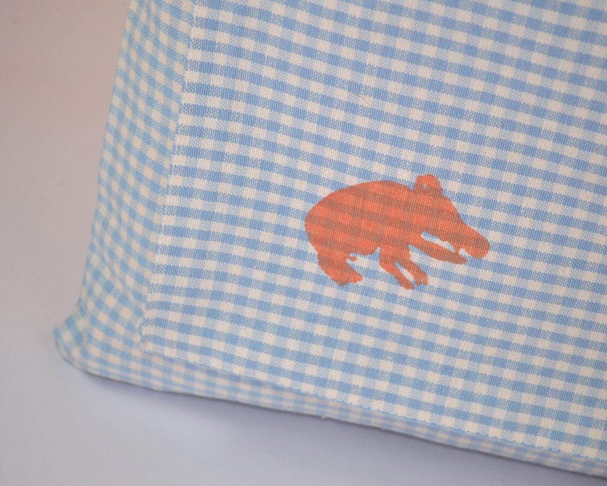 Our 100% Linen Baby Blue Gingham Carry-All Bag comes with our signature hand carved Gobeklitepe Boar print in 38×32 cm dimensions. Can be used double-faced since the inside of the bag is layered with cotton yellow gingham.