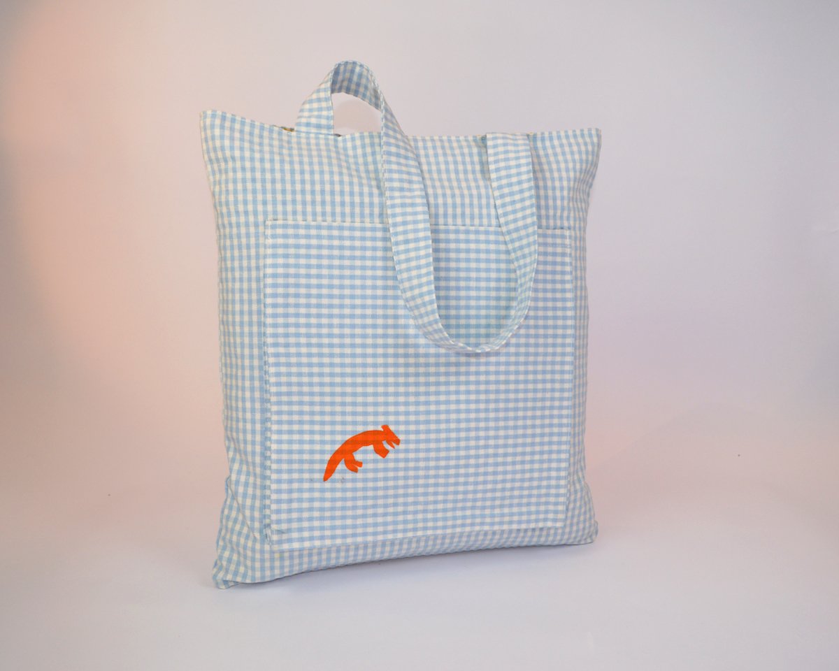Baby Blue Gingham Carry-All Bag with Gobeklitepe Fox Print