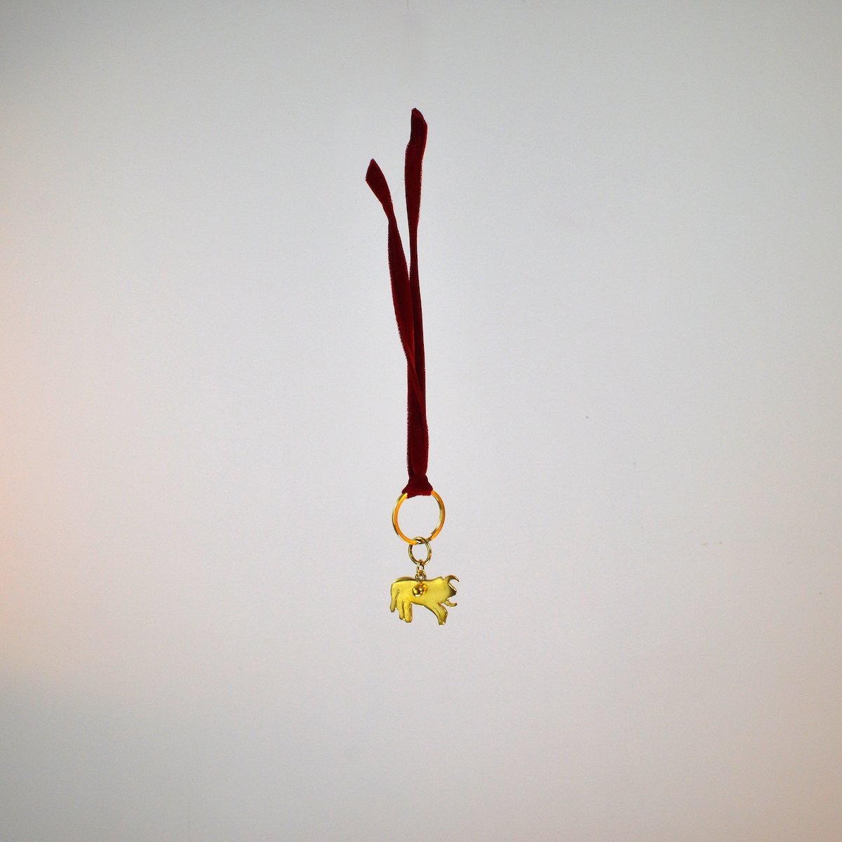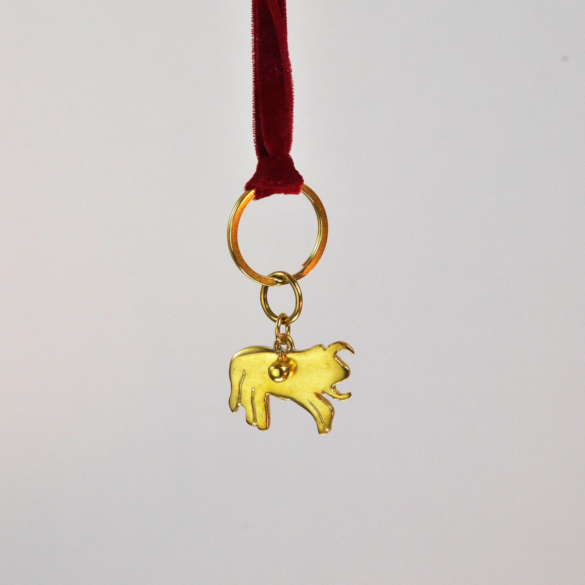 Our 100 % handmade brass cast Bull figure reanimated from the Gobeklitepe excavation site; repurposed as a keychain, comes in blood red velvet string and a tiny bell to keep your keys all together.